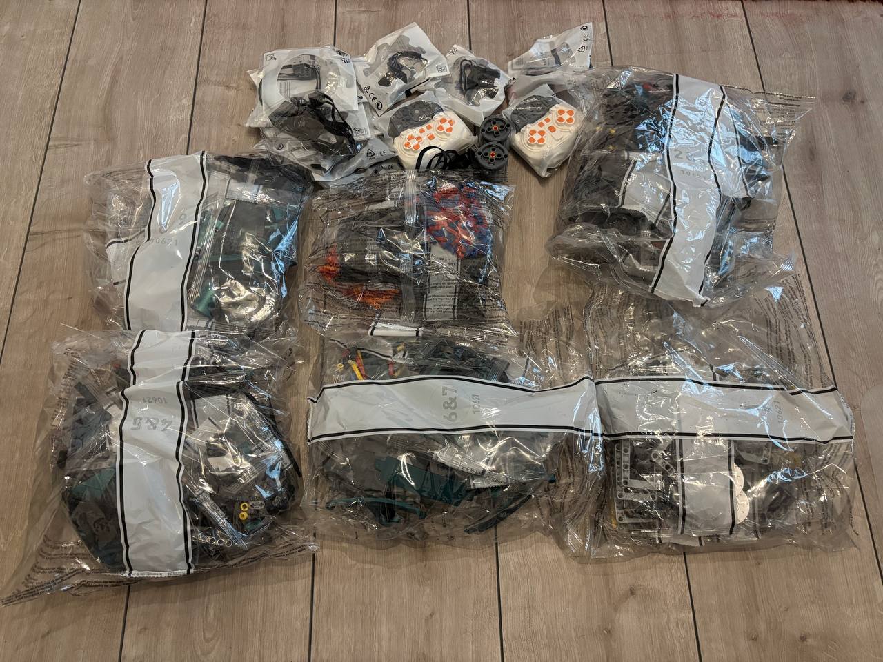 Los geht’s: eine ganze Menge Tüten für die in Summe gut 4200 (!) Teile... und vor allem ne Menge Motoren, 8 (!) LEDs und 2 (?) Fernbedienungen. Das verspricht eine Menge an Funktionen.
