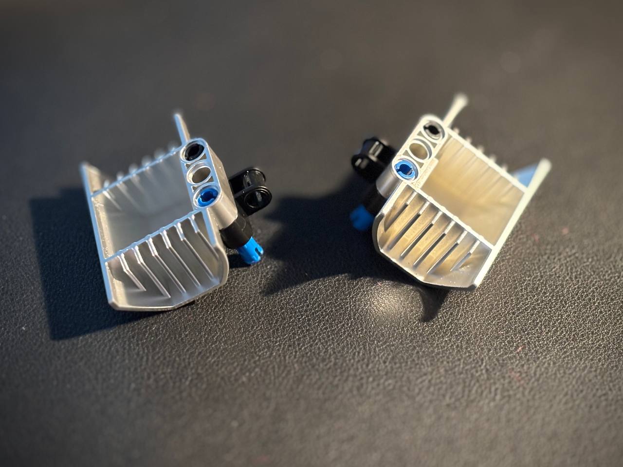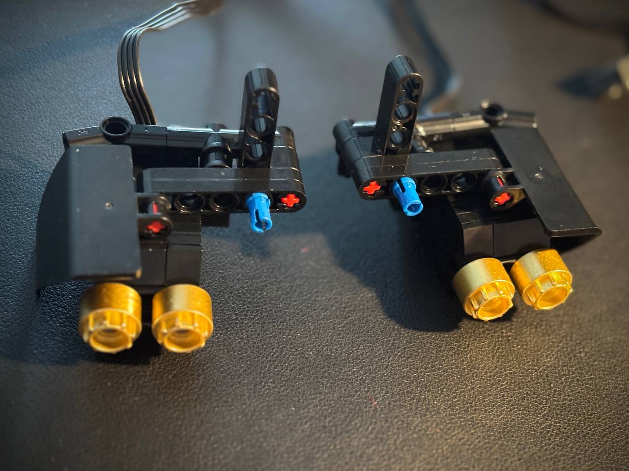 Dann kommen wir zum nächsten Highlight, nämlich den metallisch lackierten Bremsscheiben (nein, das ist nicht das sonst von Klemmbausteinen bekannte normale light gray, sondern eine extra Metallic Farbe, die wirklich wunderschön glänzt).