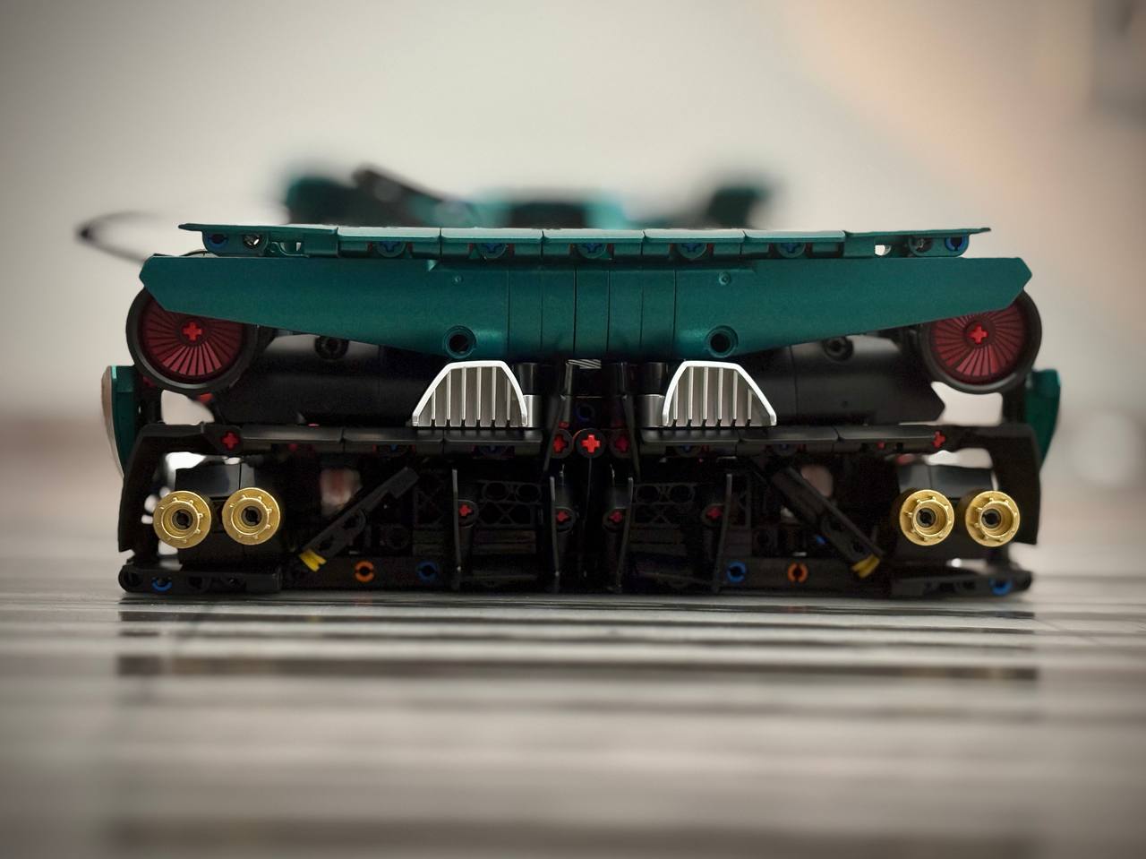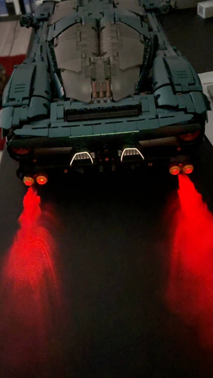 Weiter geht’s ans Heck… und da wartet gleich schon die erste Überraschung: was machen denn da Kabel an den Auspuffrohren? Das ist für mich der nächste Kracher an dem Set: wenn man in diese sogenannten Atomizer ein paar Wassertropfen einfüllt, dann wird das Wasser auf Knopfdruck verdampft und man kann Abgasrauch simulieren… how cool is that?