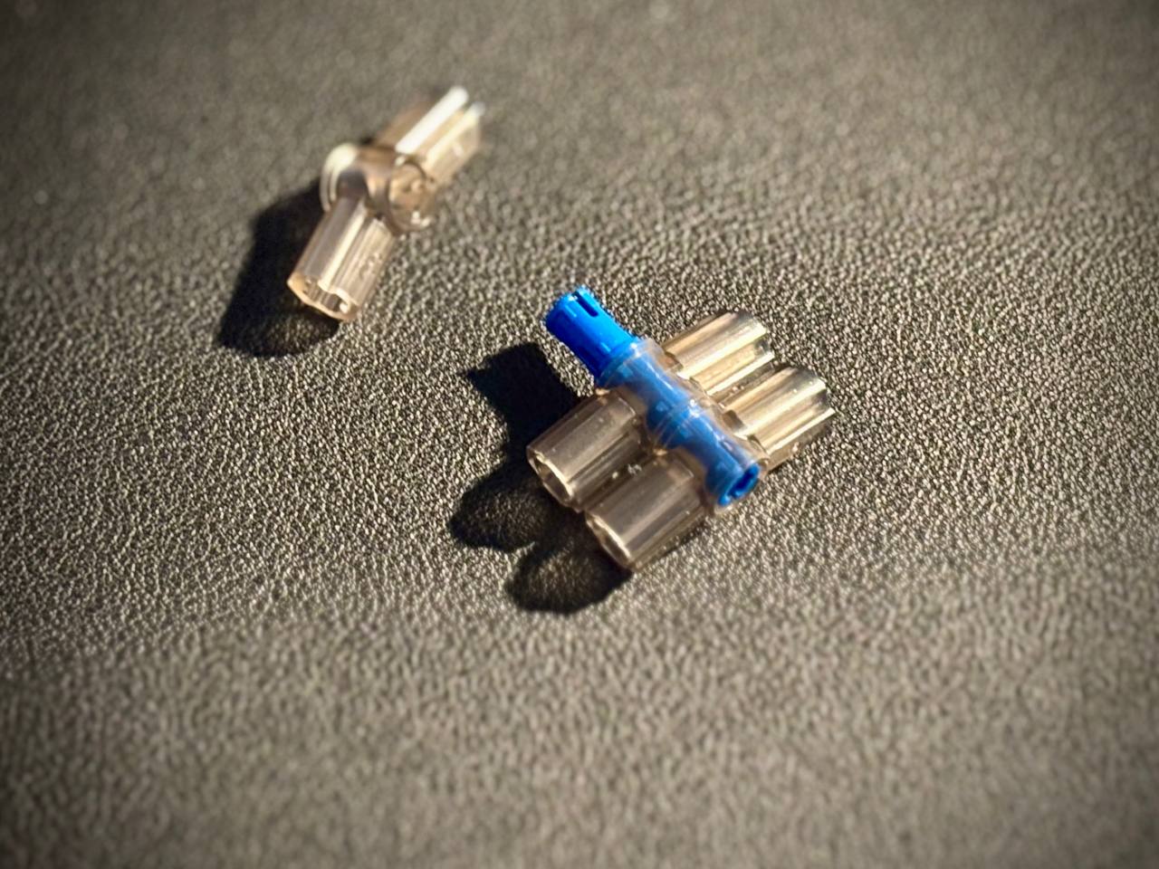 Prinzipiell scheint das nämlich zu gehen: selbst die Verbindungsstücke sind transparent… schade, dass das mit den Pins nicht funktioniert hat, respektive die dann auch noch in blau oder rot durchschimmern.