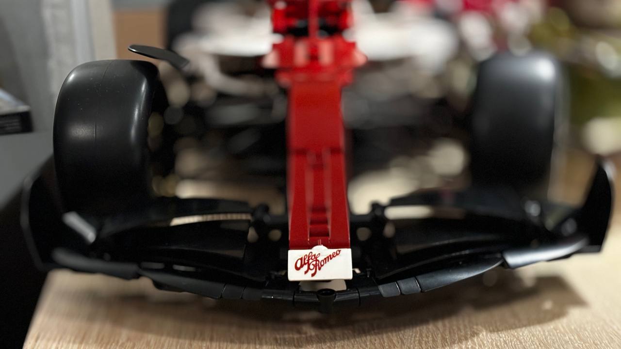 Hier der Frontflügel noch ohne Sponsorenlogos, aber mit dem legendären Alfa Romeo Schriftzug.